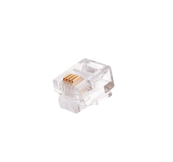 Коннектор Nikomax, RJ11(6p4c), кат. 3, неэкр., круглый ввод, для многожильного кабеля, 100 шт, цвет: прозрачный, ножи под многожильный кабель