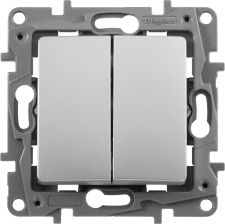 Выключатель Legrand Etika, двухклавишный, без подсветки, 10А, цвет: алюминий (672402)