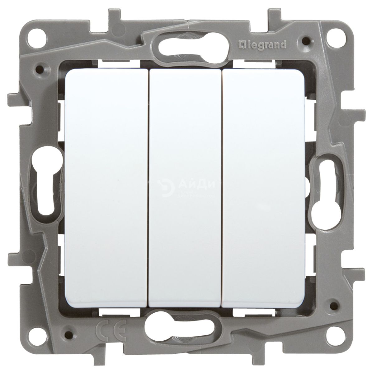 Выключатель Legrand Etika, трехклавишный, без подсветки, 10А, цвет: белый (672213)