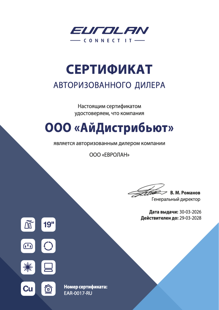 Eurolan – это ведущий российский производитель комплексных решений для построения систем связи. Компания предлагает весь спектр оборудования, от СКС и 19-дюймовых телекоммуникационных шкафов и стоек, до блоков силовых розеток, телефонных патч-панелей, аксессуаров и…